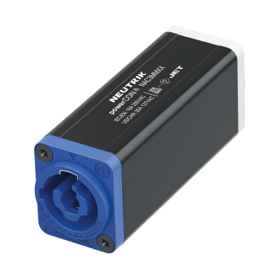 CBC powerCON coupler for linking powercables using IEC 60320-1 compliant NEUTRIK powerCON XX series receptacles for power in (NAC3MPXXA) and power out (NAC3MPXXB).