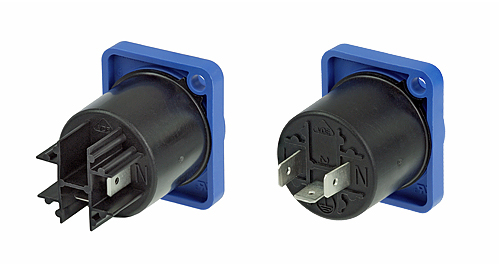The powerCON is a locking 3 conductor equipment AC connector with contacts for line, neutral and pre-mating ground contact. It replaces appliance couplers wherever a very rugged solution in combination with a locking device is needed in order to guarantee a safe power connection.